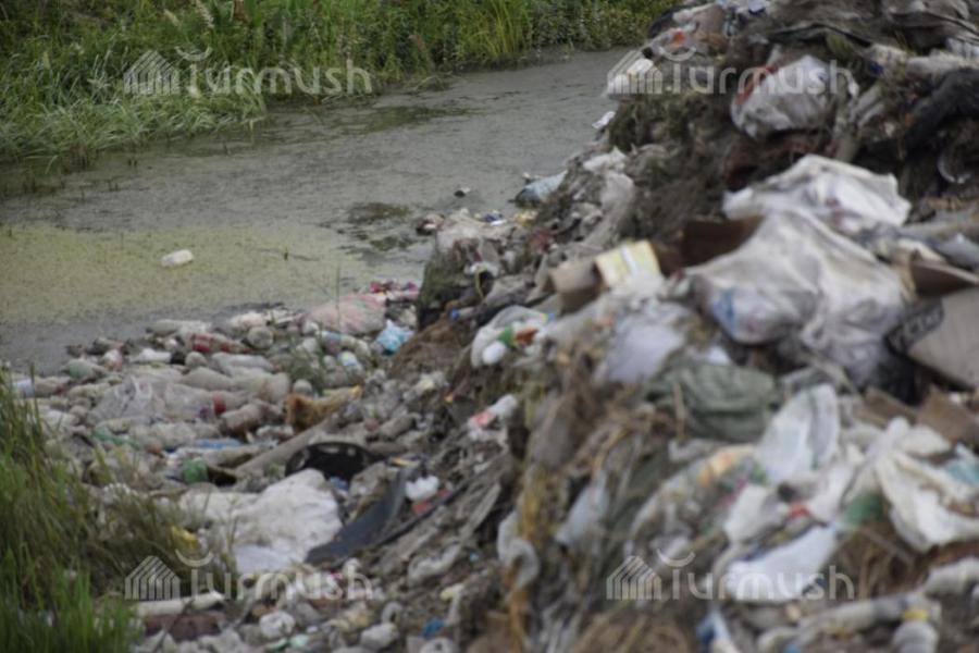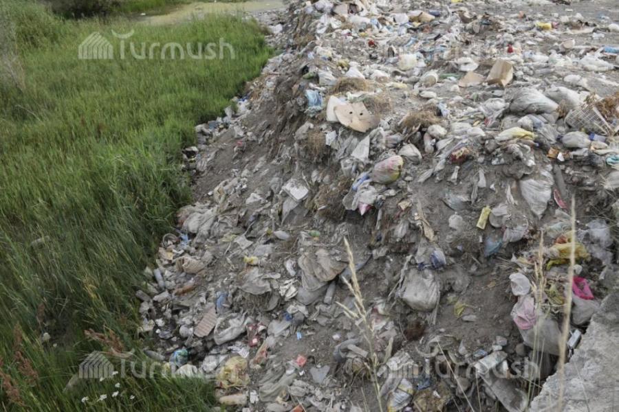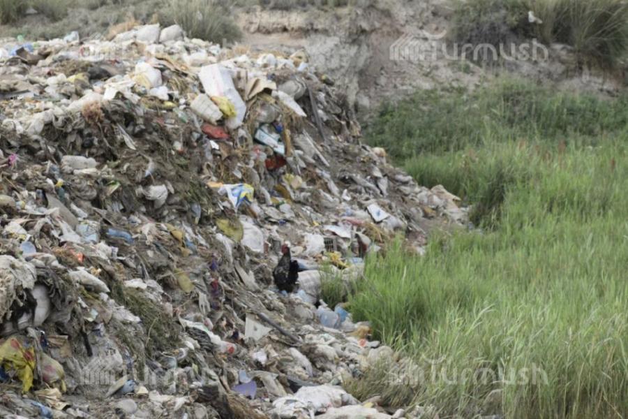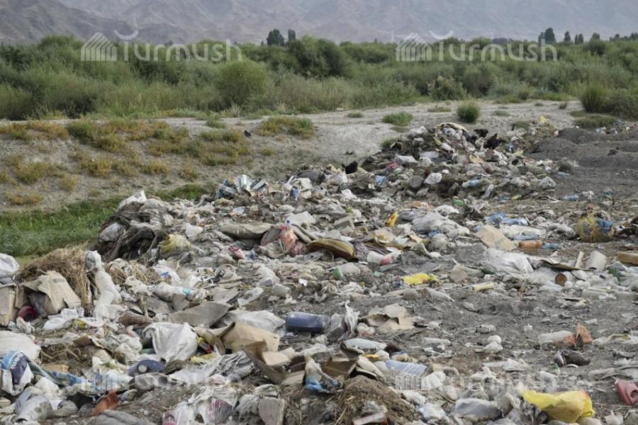 В селе Кочкор Нарынской области из-за отсутствия мусорного полигона на берегу реки образовалась мусорная свалка (фото)