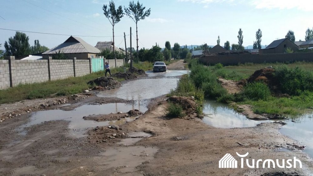 В новостройке Кобогон-Сай Кочкорского района из-за отсутствия арычных сетей образовались большие лужи (фото)