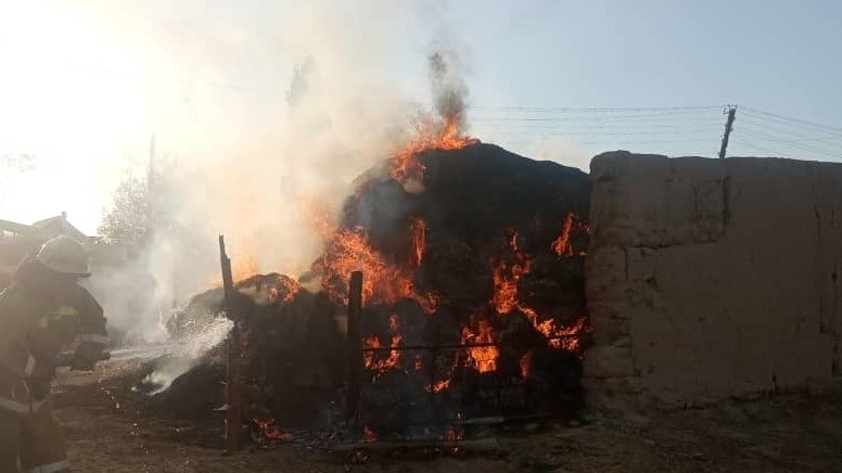 В Кочкоре сгорело 600 тюков сена